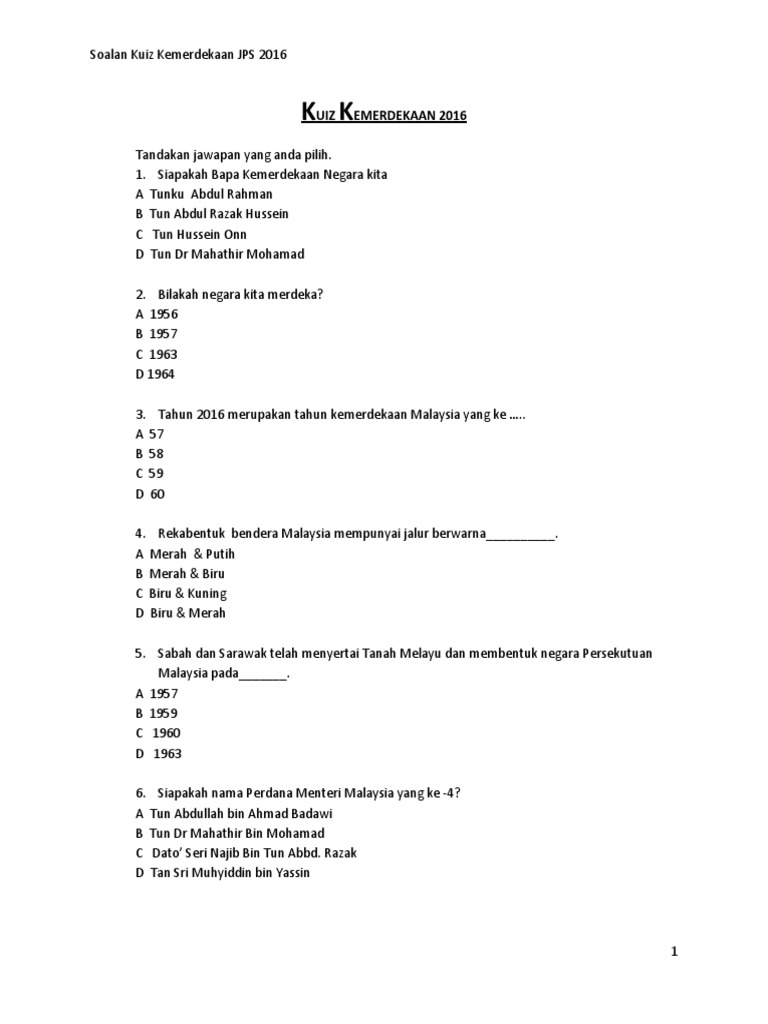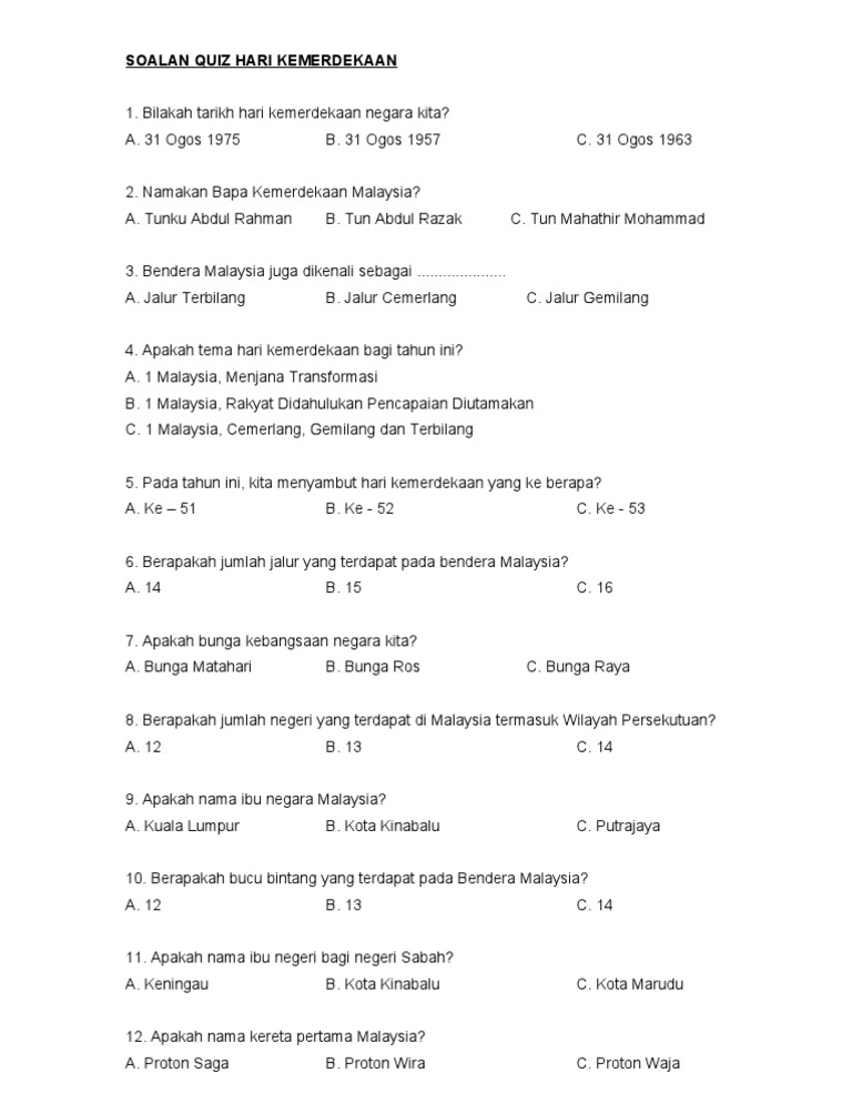 Soalan Quiz Hari Kemerdekaan Pdf